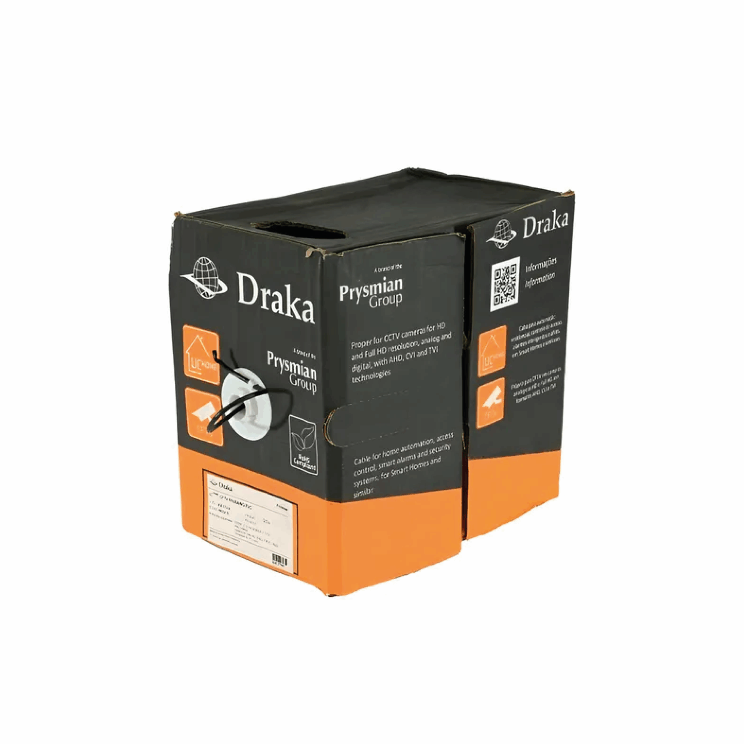 Cable diseñado para instalaciones de videovigilancia al aire libre (CFTV). Está fabricado por Prysmian, marca reconocida por la calidad en cables de telecomunicaciones.